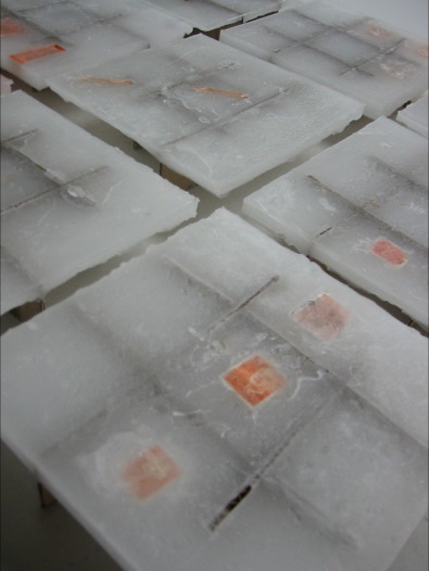 in den tafeln sind fundstücke verwandter provenienz geborgen. die eingefrorene ordnung, gleichsam in einer fiktiven archäologischen fundsituation verewigt, bleibt subjektiv