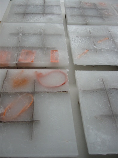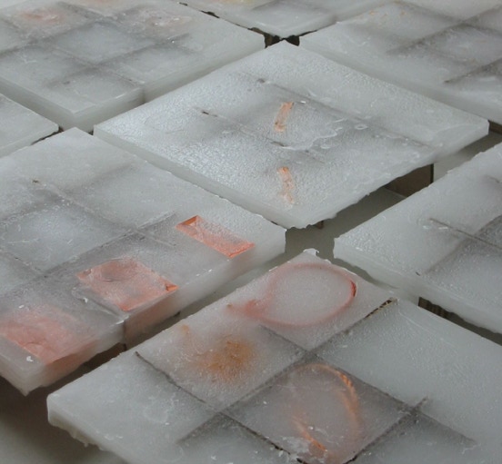 in den tafeln sind fundstücke verwandter provenienz geborgen. die eingefrorene ordnung, gleichsam in einer fiktiven archäologischen fundsituation verewigt, bleibt subjektiv
